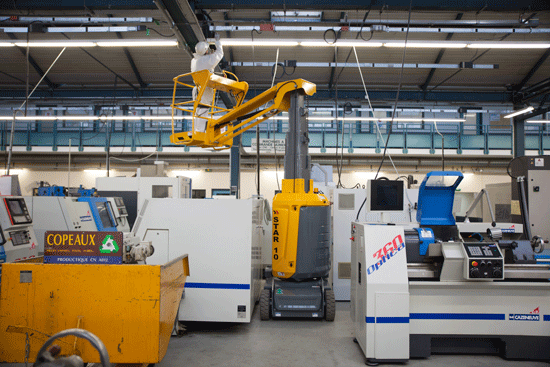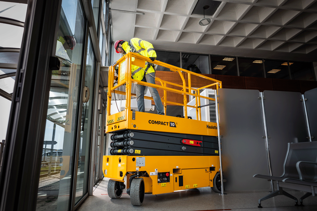 Compact scissor lifts or mast lifts are excellent choices for tight spaces. Their smaller footprints make them easier to maneuver in restricted areas. On Haulotte’s COMPACT range you can fold the guardrails to pass through low doors. This is a convenient feature for indoor sites with specific applications.